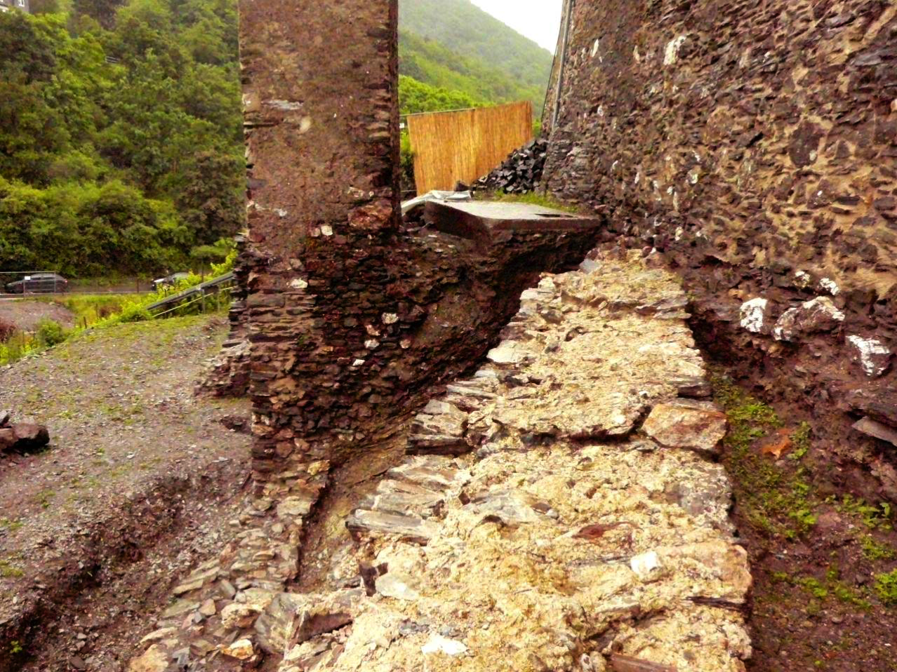 Wie heute zu sehen ist, wurde das Kastell auf dem gewachsenen Felsen errichtet. Somit haben die Römer für den Neubau des PRIMUM CASTELLUM Tabula rasa gemacht und während der Planierungsarbeiten eventuelle Vorbauten aus der Zeit der Kelten und der Anfangszeit der Römer platt gemacht. Daher sind die Chancen so gut wie Null, dass hier unter den jetzt gefundenen römischen Kastell-Mauern noch ältere Bauten vorhanden sind. Wohl aber sind die möglichen Reste der eventuellen Vorbauten um die heutige Burg verstreut zu finden. Streufunde aus der Römerzeit habe ich selbst schon dicht neben und auch weit unter der Burg gefunden und hierüber sowohl Herrn Dr. Karl-Josef Gilles als auch Herrn Bürgermeister Wolfgang Port informiert.